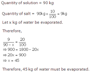 18. A 90 kg solution has 10% salt. How much water must be evaporated to have the solution with 20% salt?