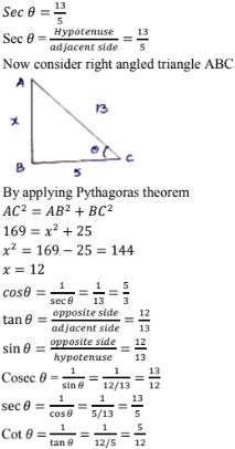 For sec A = 12/5 we get adjacent side = 13