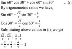 2. Sin 60° cos 30° + cos 60° sin 30°