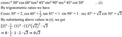 11. cosec2 30° cos60° tan3 45° sin2 90° sec2 45° cot30°