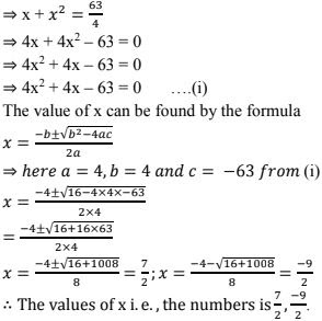 11. The sum of a number and its square is 63/4. Find the numbers.