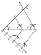 Step 7: From Z3, draw Z3C’ ∥ CZ5 meeting BC at C’.